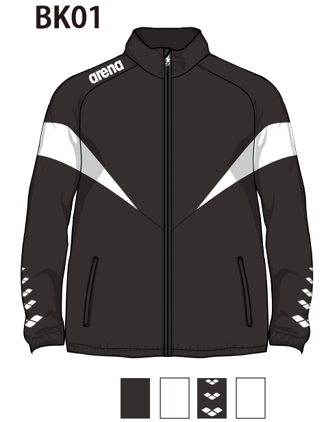 チーム用の布帛ジャケットです。ノーマル(レギュラー)シルエットでゆったり見えるパターンを採用しています。5連アリーナマーク使用デザインです。