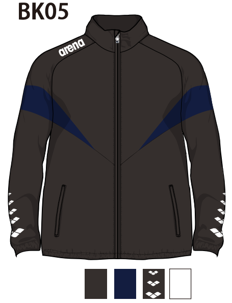 アリーナ カスタムオーダー受注生産 ウインドジャケット(ユニセックス)フード無しチームウエア OSS4JKU007-BK05 ベースカラー:ブラック