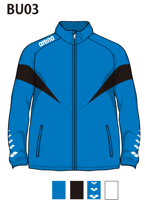 アリーナ カスタムオーダー受注生産 ウインドジャケット(ユニセックス)フード無しチームウエア OSS4JKU007-BU03 ベースカラー:ブルー