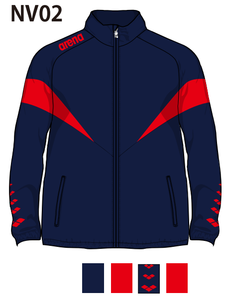 チーム用の布帛ジャケットです。ノーマル(レギュラー)シルエットでゆったり見えるパターンを採用しています。5連アリーナマーク使用デザインです。