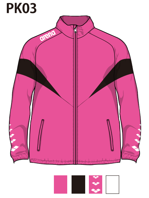 アリーナ カスタムオーダー受注生産 ウインドジャケット(ユニセックス)フード無しチームウエア OSS4JKU007-PK03 ベースカラー:ピンク