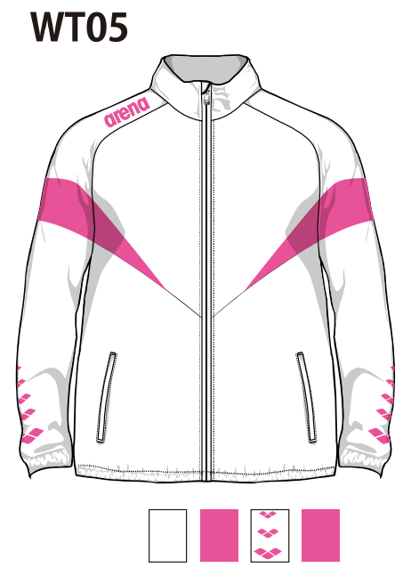チーム用の布帛ジャケットです。ノーマル(レギュラー)シルエットでゆったり見えるパターンを採用しています。5連アリーナマーク使用デザインです。