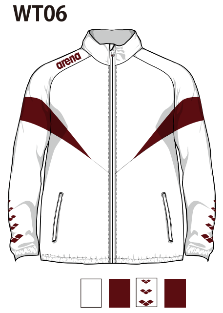 チーム用の布帛ジャケットです。ノーマル(レギュラー)シルエットでゆったり見えるパターンを採用しています。5連アリーナマーク使用デザインです。
