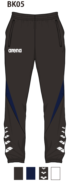 チーム用の布帛ロングパンツです。ノーマル(レギュラー)シルエットでゆったり見えるパターンを採用しています。5連アリーナマーク使用デザインです