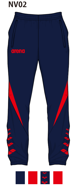 チーム用の布帛ロングパンツです。ノーマル(レギュラー)シルエットでゆったり見えるパターンを採用しています。5連アリーナマーク使用デザインです