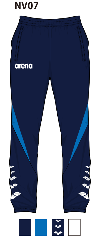 チーム用の布帛ロングパンツです。ノーマル(レギュラー)シルエットでゆったり見えるパターンを採用しています。5連アリーナマーク使用デザインです