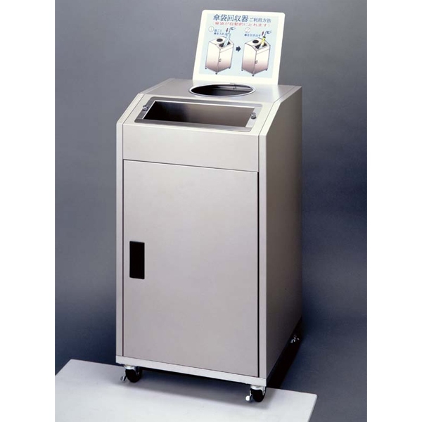 特徴:・傘袋が付いたまま、傘を入れて抜くだけで傘袋が取れる傘袋回収機です。