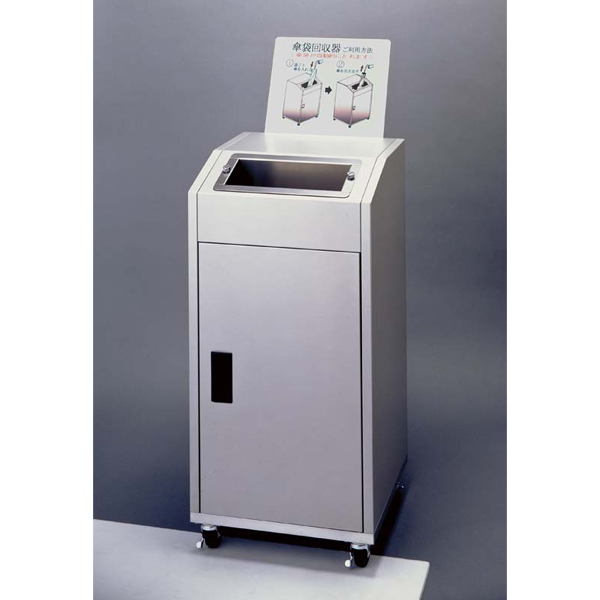 特徴:・傘袋が付いたまま、傘を入れて抜くだけで傘袋が取れる傘袋回収機です。