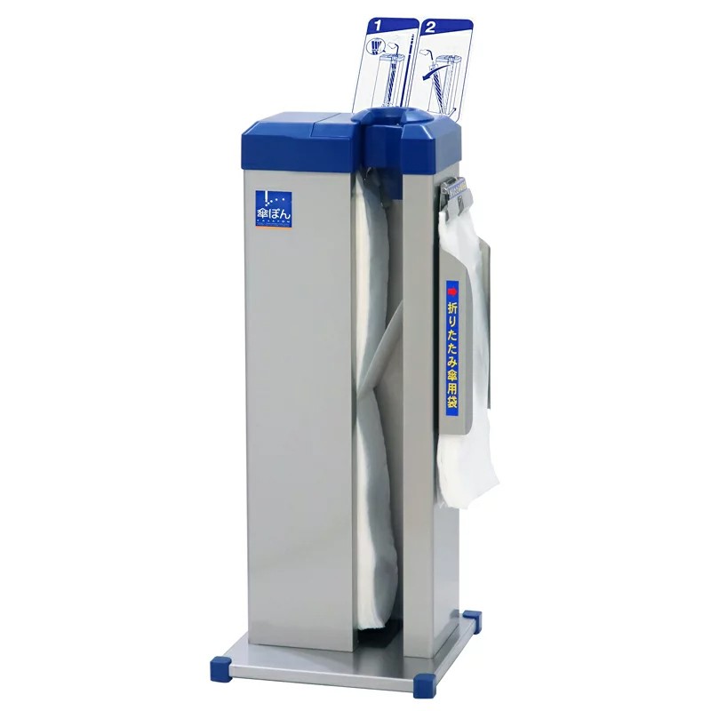 特徴:・濡れた傘を片手で傘袋へ収納できる機械です。雨の日の快適な環境づくりを「傘ぽん」