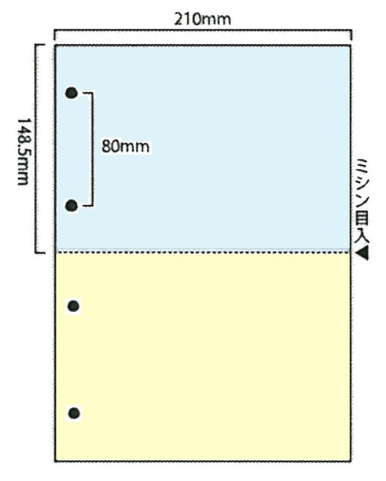 A4 プリンター帳票 カット紙 帳票用紙 カラー 2分割 4穴 ミシン目入り (1,000枚/箱) 【直送品】