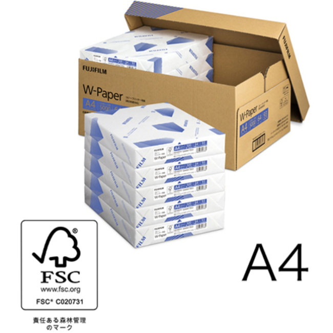 コピー用紙 A4 FUJIFILM W‐Paper フタ式ボックスタイプ 1箱(5,000枚:500枚×10冊) 【FUJIFILM(旧Xerox)直送品】 ZGAA1372