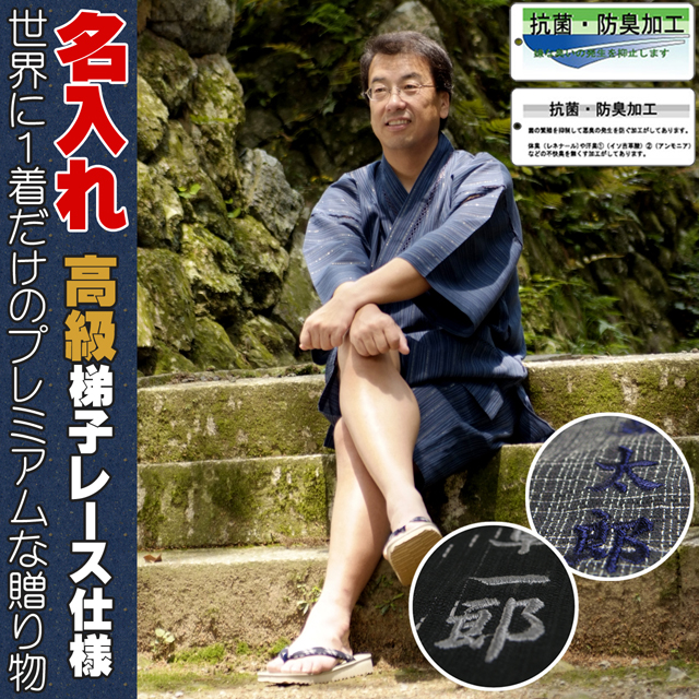 名入れ 甚平 メンズ じんべい ギフト箱入り 抗菌消臭加工 送料無料 ラッピング無料 お名前を刺しゅうでお入れいたします