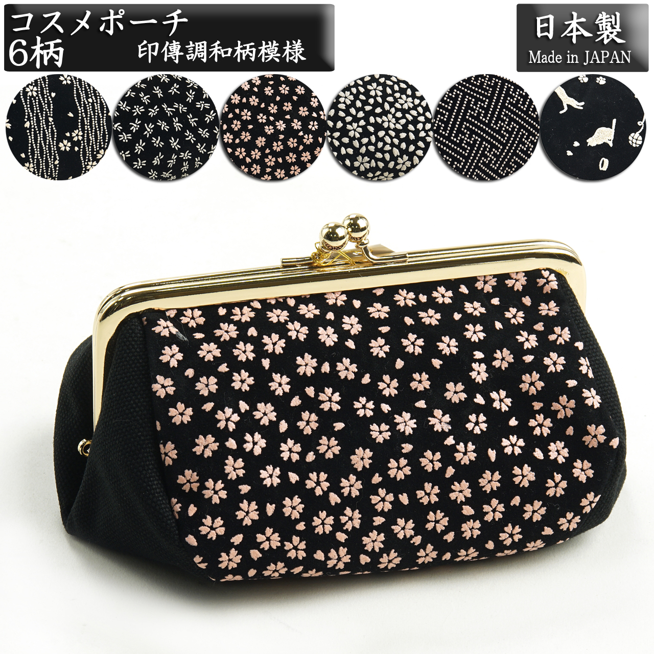 ●コスメポーチ 印傳調 化粧ポーチ 日本製 MadeInJapan フロッキープリント がまぐち 口金タイプ コスメ ポーチ アクセサリー 小物入れ がま口 印傳 印伝 和柄ポーチ 和風ポーチ