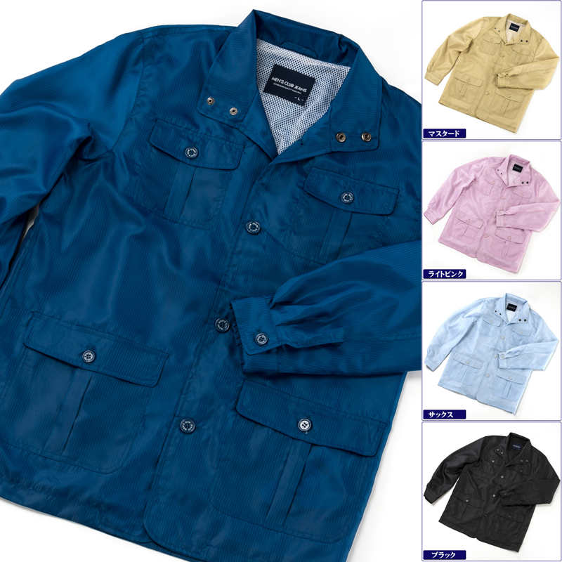 メンズ サファリジャケット シャドウ ストライプ ウインドブレーカー ファリジャケット 多機能ポケット付き 総裏 メッシュ ウィンド ブレーカー 紳士