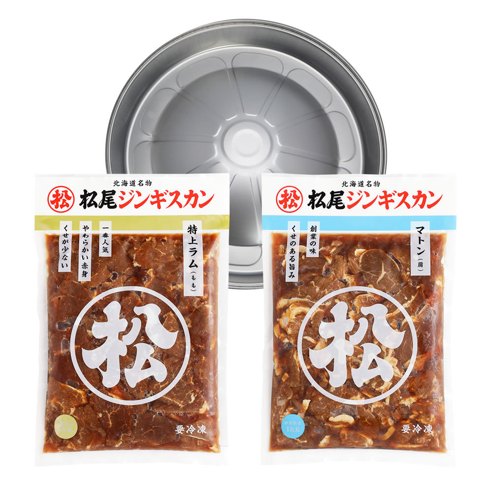 | 味付マトン1kg×1 味付特上ラム1kg×1 簡易ジンギスカン鍋×1 |