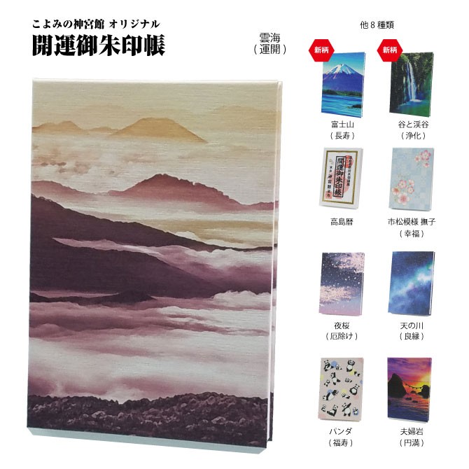 神宮館オリジナル御朱印帳です。雲海は「運開」と語呂がいいことから運が開き、幸せが舞い込むように願いが込められています。