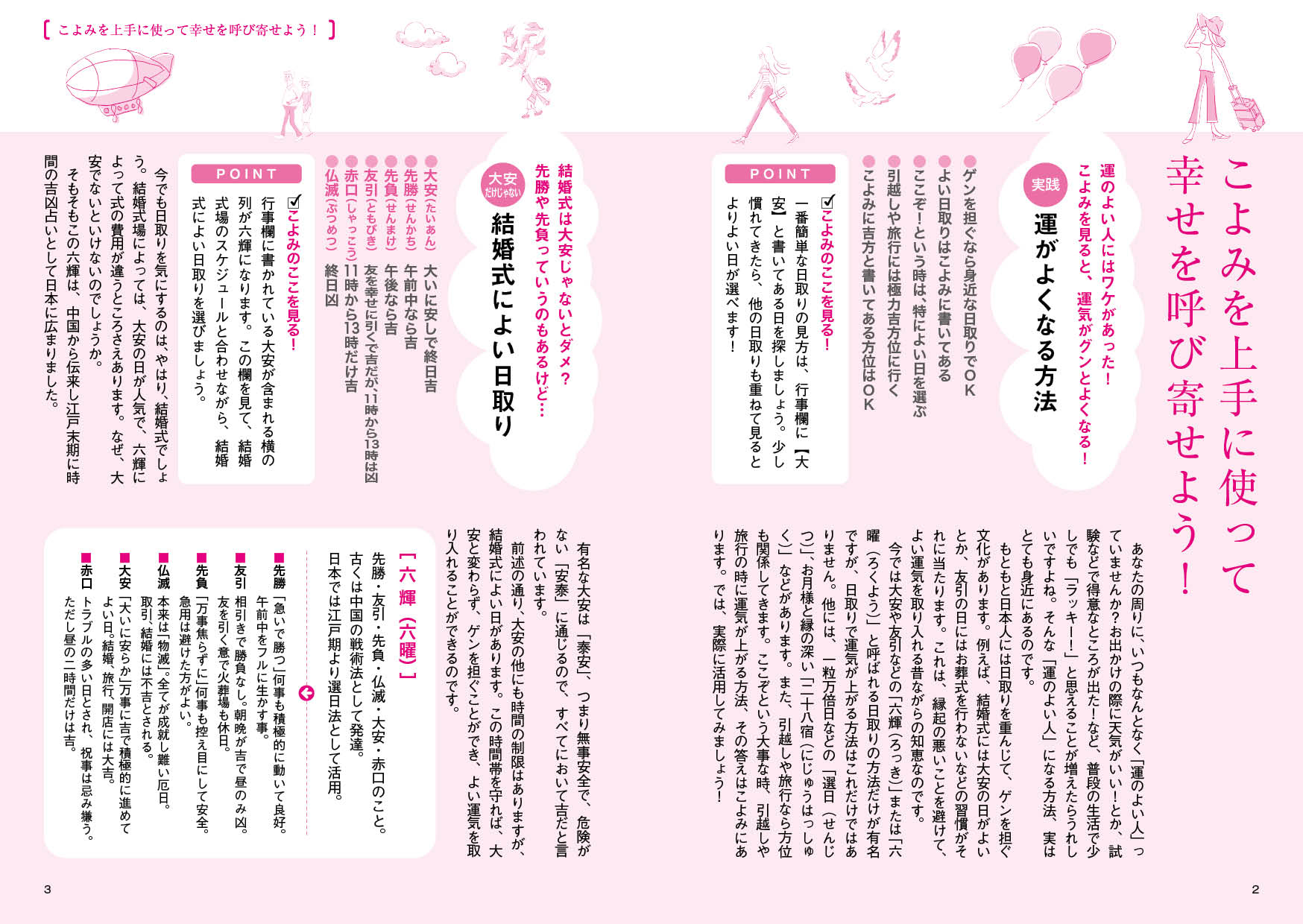 ・日々の吉凶や方位も記載され、大切な行事の日取りの決定をする時にに見られたり、年・月・日の運勢を知ることも出来ます。