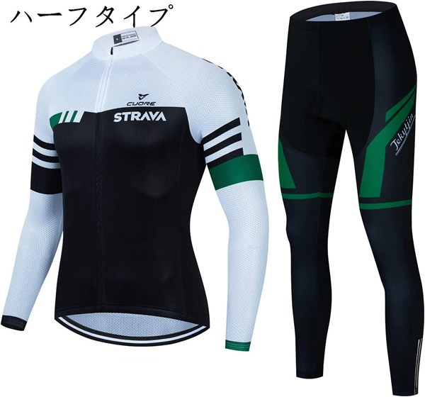 メンズ サイクルジャージ サイクルパンツ 春夏用 上下セット サイクルタイツ 長袖 3Dゲルパッド付き 吸汗速乾 抗菌防臭 通気 (白い