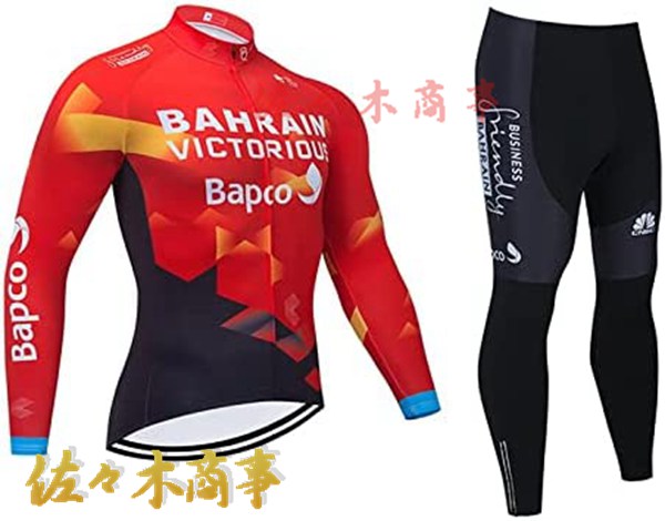 メイン素材:Polyester+Lycra;ジャージー:Polyester、パンツ:Polyester+Lycra、表面はポリエステル、裏面は起毛の素材を採用し、防風保温、通気性に優れる秋冬用サイクルジャージです