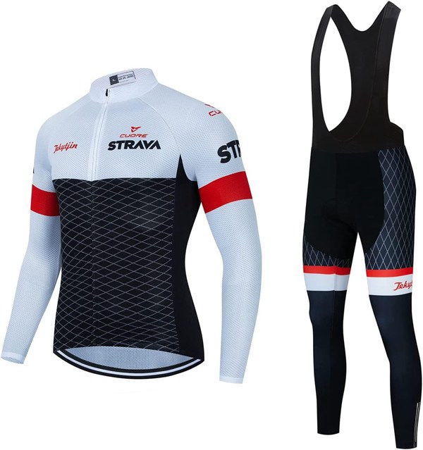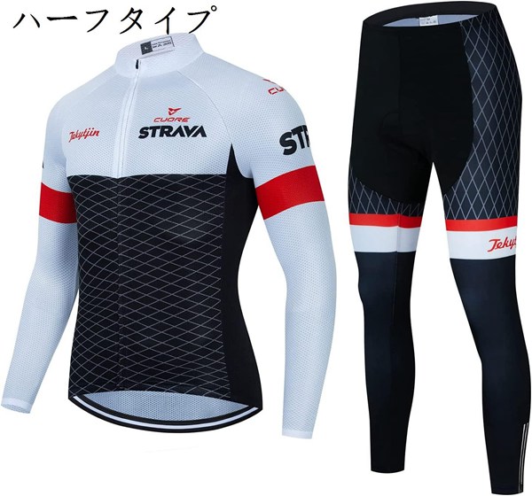メンズ サイクルジャージ サイクルパンツ 春夏用 上下セット 長袖 3Dゲルパッド付き 吸汗速乾 抗菌防臭 通気 ST-35 (白い :