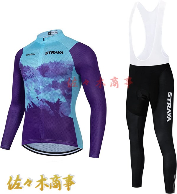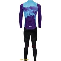 メイン素材:Polyester+Lycra;ジャージー:Polyester、パンツ:Polyester+Lycra、表面はポリエステル、裏面は起毛の素材を採用し、防風保温、通気性に優れる秋冬用サイクルジャージです