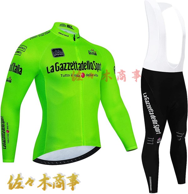 メイン素材:Polyester+Lycra;ジャージー:Polyester、パンツ:Polyester+Lycra、表面はポリエステル、裏面は起毛の素材を採用し、防風保温、通気性に優れる秋冬用サイクルジャージです