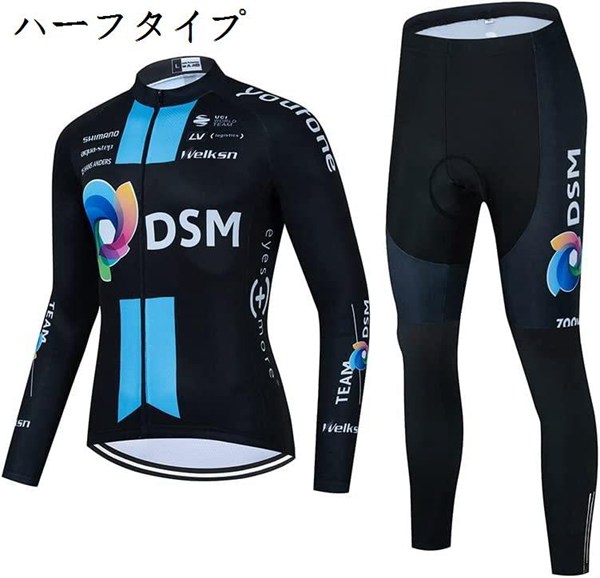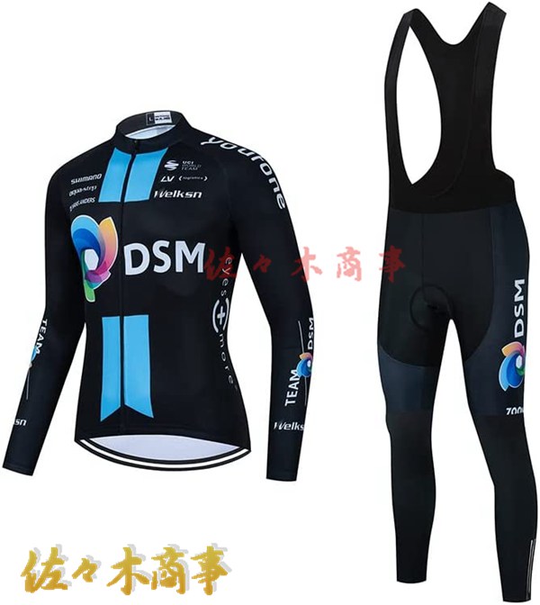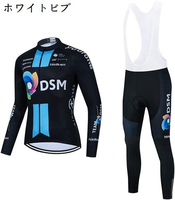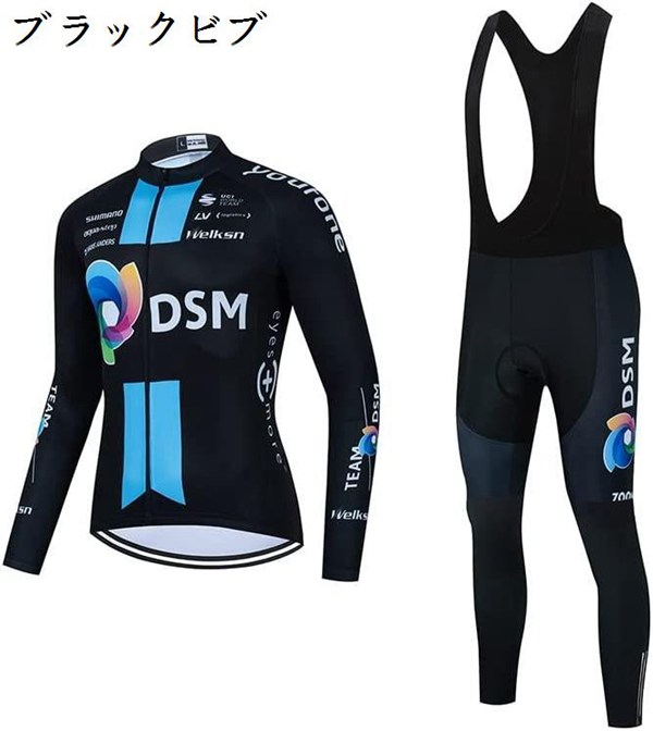 メイン素材:Polyester+Lycra;ジャージー:Polyester、パンツ:Polyester+Lycra、表面はポリエステル、裏面は起毛の素材を採用し、防風保温、通気性に優れる秋冬用サイクルジャージです