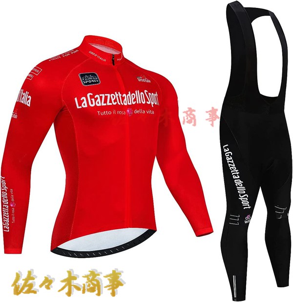 メイン素材:Polyester+Lycra;ジャージー:Polyester、パンツ:Polyester+Lycra、表面はポリエステル、裏面は起毛の素材を採用し、防風保温、通気性に優れる秋冬用サイクルジャージです