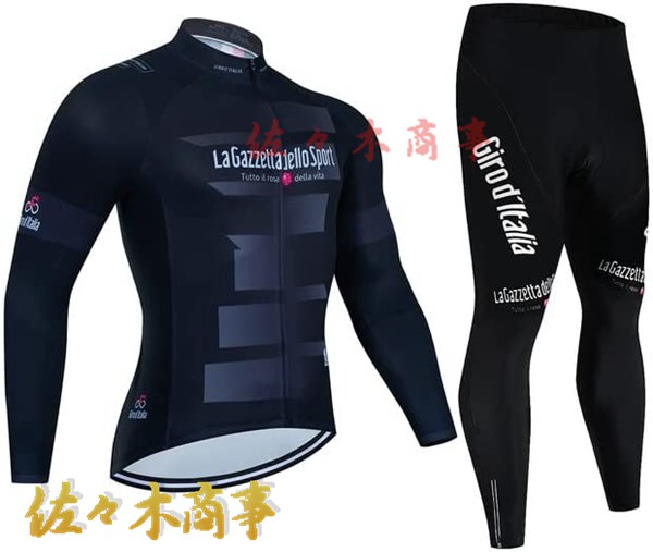 メイン素材:Polyester+Lycra;ジャージー:Polyester、パンツ:Polyester+Lycra、表面はポリエステル、裏面は起毛の素材を採用し、防風保温、通気性に優れる秋冬用サイクルジャージです