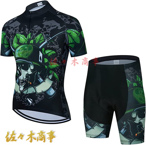 サイクルジャージ 上下セット 半袖 ドクロ 夏 前ジッパー ハーフパンツ ストレッチ サイクリングウェア 自転車ウェア