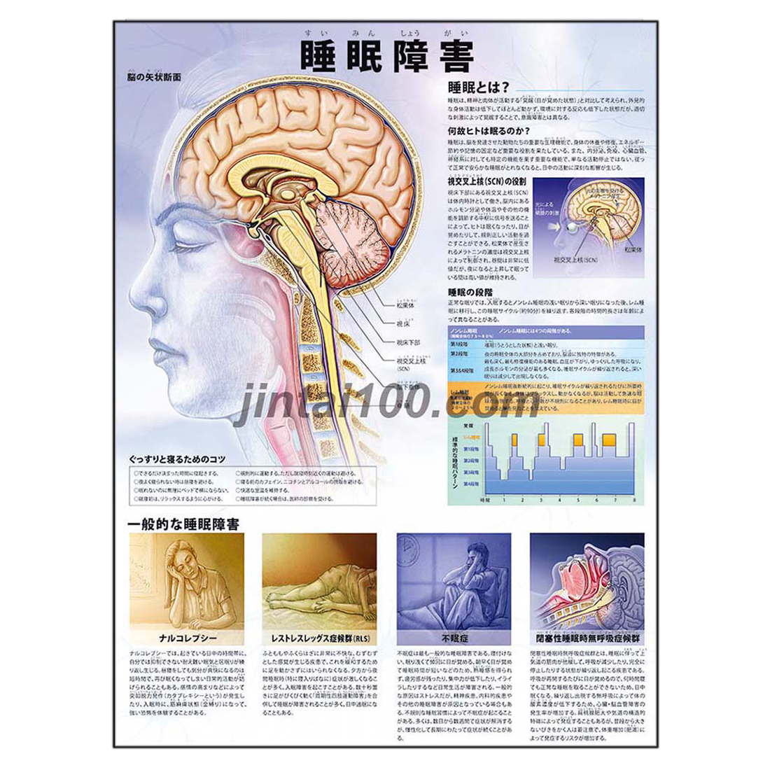 「睡眠障害」医学ポスター ポスターB3サイズ 人体解剖学図ポスター 医学チャート