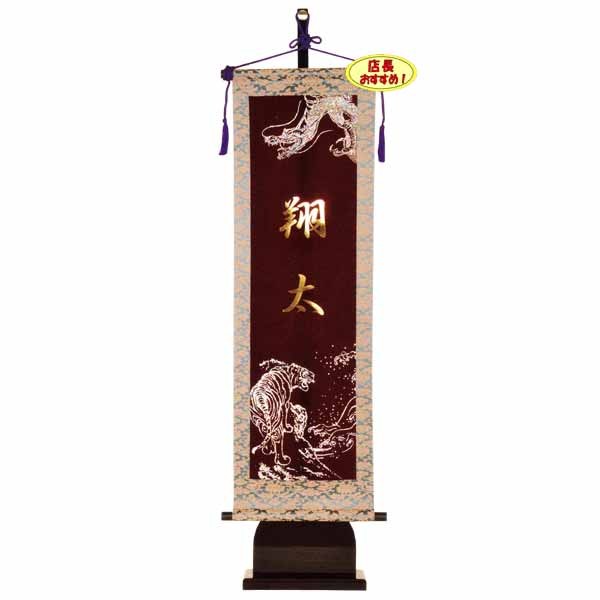 【数量限定品】 五月人形 名前旗 間口23×奥10×高75cm 五月人形と共に節句を彩る、龍虎柄(エンジ地)キラキラ輝く名前旗。飾り台付き。赤ちゃんの出産祝いの初節句飾りの通販販売店。五月人形飾りの通販販売店。初節句の五月人形購入の選び方に迷われたら兵庫県加古川市、姫路市、明石市、神戸市、高砂市周辺の人形店陣屋で。 a5koba49