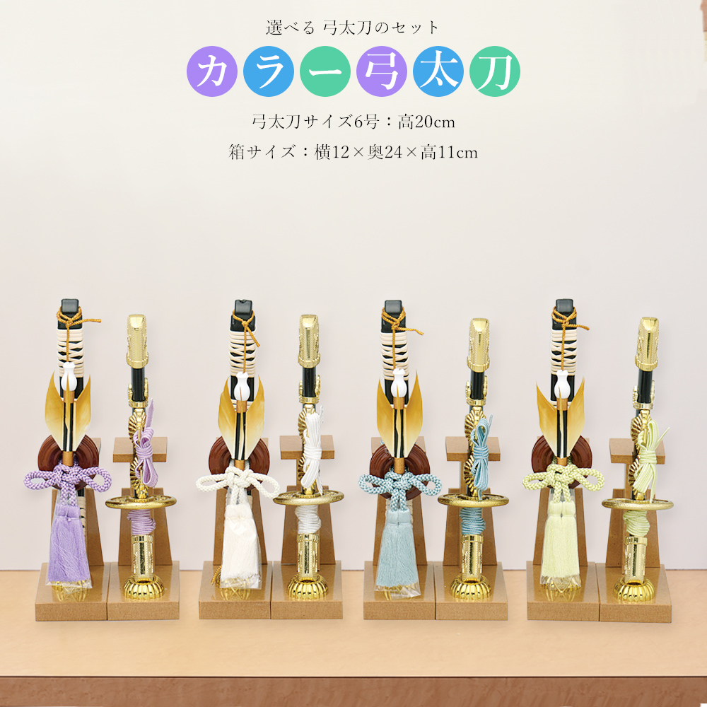 ・カラフルな弓と太刀のセット商品です。 人気の4色からお選びいただけます。 守り刀と魔よけの弓の2点飾りが、お子様のお祝いに、端午の節句を楽しく賑やかに彩ります! ・親御様、お子様、縁者様の健康と発展を願いながら職人が丁寧に仕上げた 五月人形飾り/のぼりが初節句のお祝いにはなを添えます。