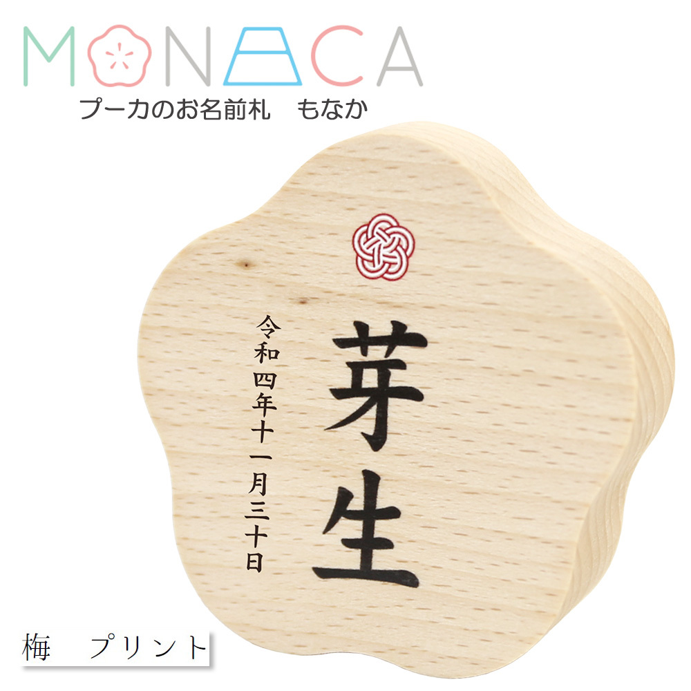 名前札 コンパクト おしゃれ -MONACA もなか- 梅 プリント プーカのお名前札 木製 ミニ インテリア