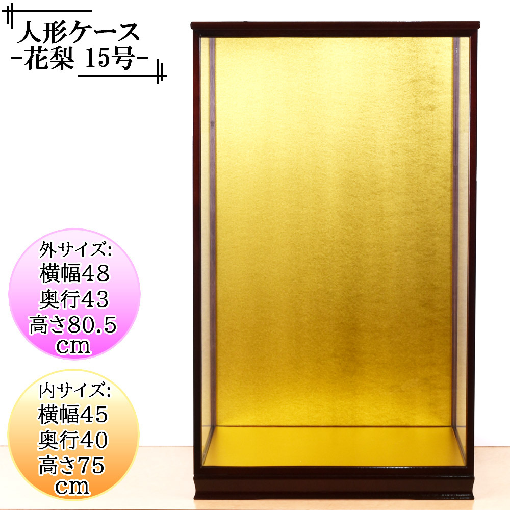 人形ケース ガラス人形ケース 幅 間口45奥行40高75cm(ガラス寸法)内計り ガラスケース 雛人形ケース 五月人形ケース 戸付 15号花梨
