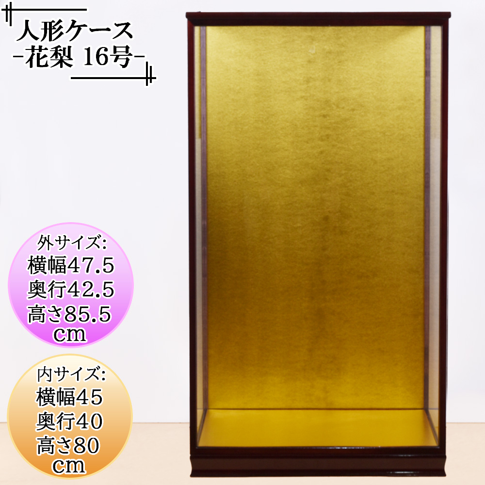 人形ケース ガラス人形ケース 幅 間口45奥行40高80cm(ガラス寸法)内計り ガラスケース 雛人形ケース 五月人形ケース 戸付 16号花梨