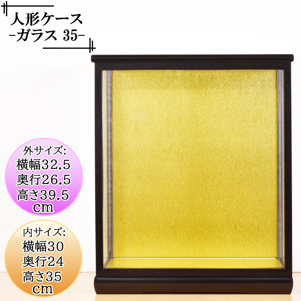 人形ケース ガラス人形ケース 幅 間口30奥行24高35cm(ガラス寸法)内計り ガラスケース 雛人形ケース 五月人形ケース 光淋35黒桑