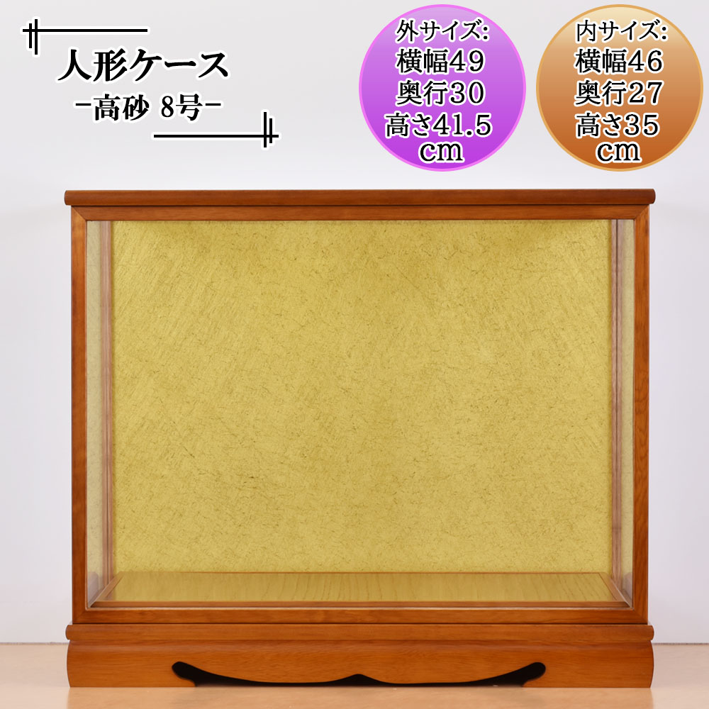 人形ケース ガラス人形ケース 幅 間口46奥行27高35cm(ガラス寸法)内計り ガラスケース 雛人形ケース 五月人形ケース 戸付 高砂8ケヤキ