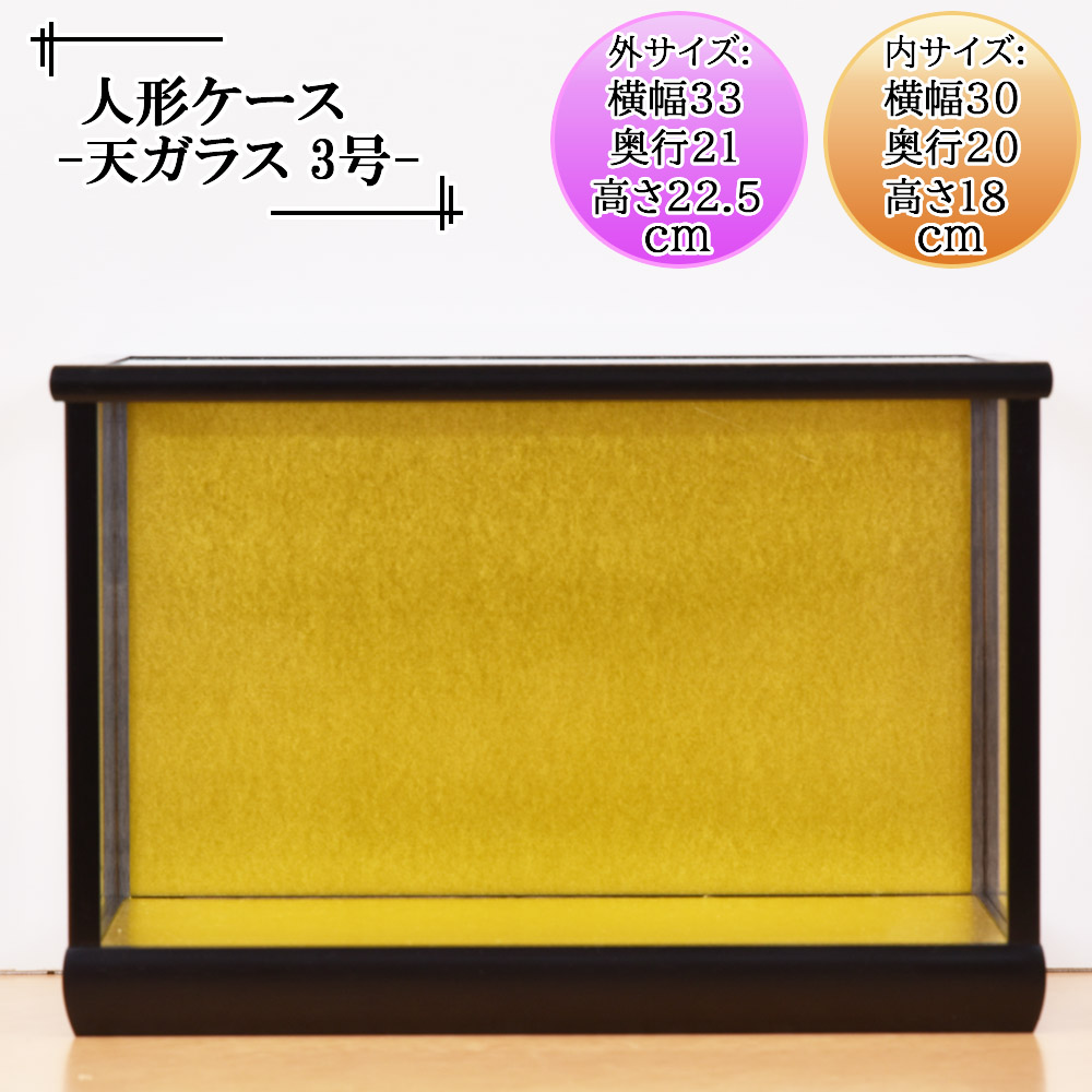 人形ケース ガラス人形ケース 幅 間口30奥行20高18cm(ガラス寸法)内計り ガラスケース 雛人形ケース 五月人形ケース 天乗せガラス ダルマ3号黒桑