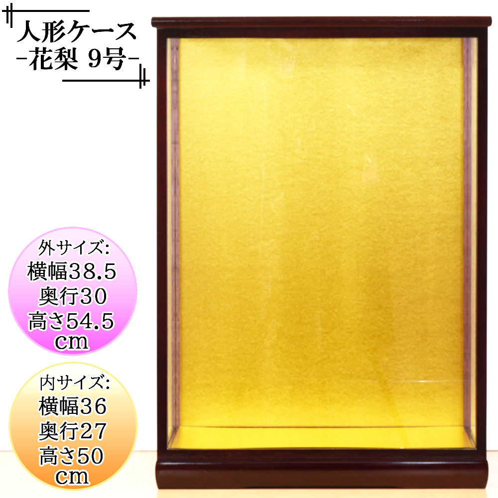 人形ケース ガラス人形ケース 幅 間口36奥行27高50cm(ガラス寸法)内計り ガラスケース 雛人形ケース 五月人形ケース 戸付 9号巾広花梨