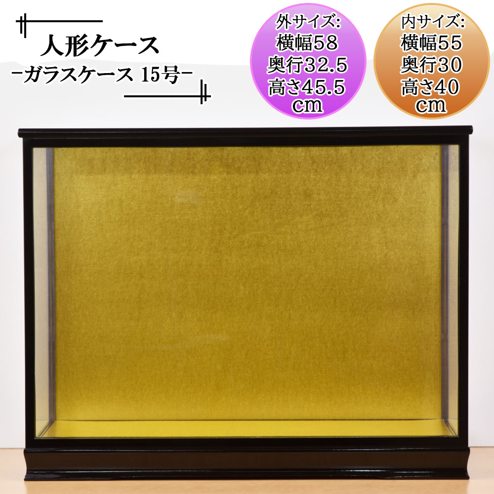 人形ケース ガラス人形ケース 幅 間口55奥行30高40cm(ガラス寸法)内計り ガラスケース 雛人形ケース 五月人形ケース 戸付 木目込15黒