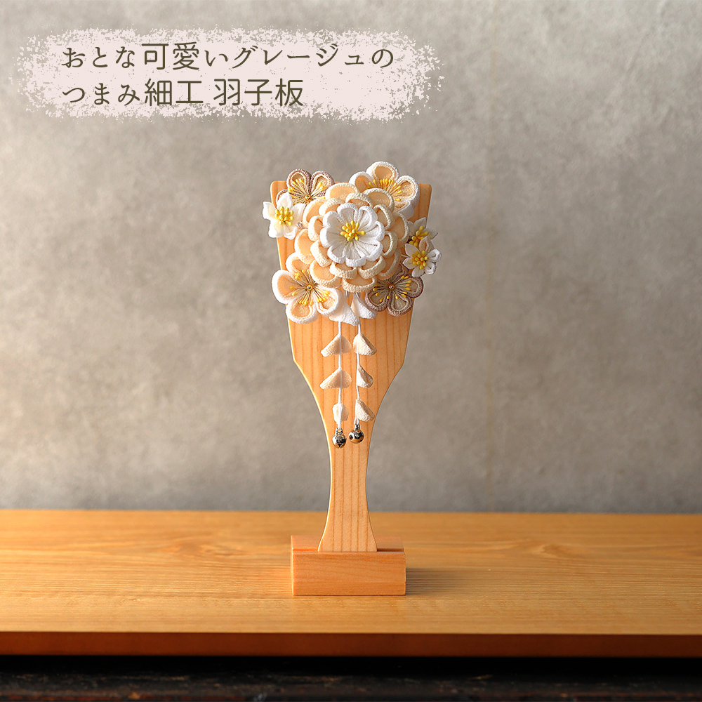 羽子板 つまみ細工 単品 初正月 7号 (高さ25cm) コンパクト 花飾り 羽子板飾り 髪飾り おしゃれ モダン ミニ お祝い 可愛いピンク グレージュ くすみ色 赤 2026