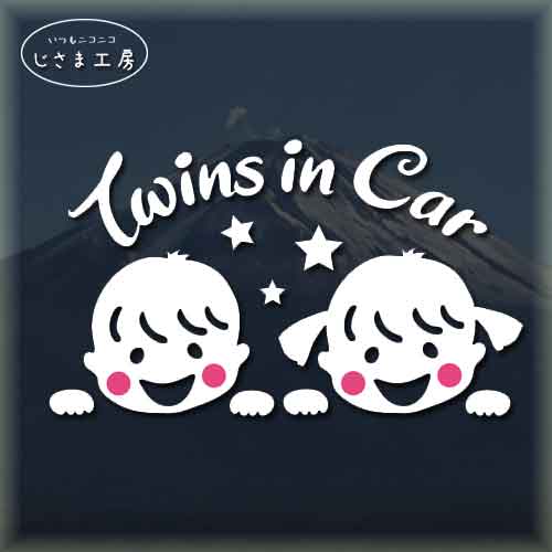 twins in car ステッカー 双子の男の子と女の子 かわいい顔 こども シール 車 ツインズインカー TWINSINCAR