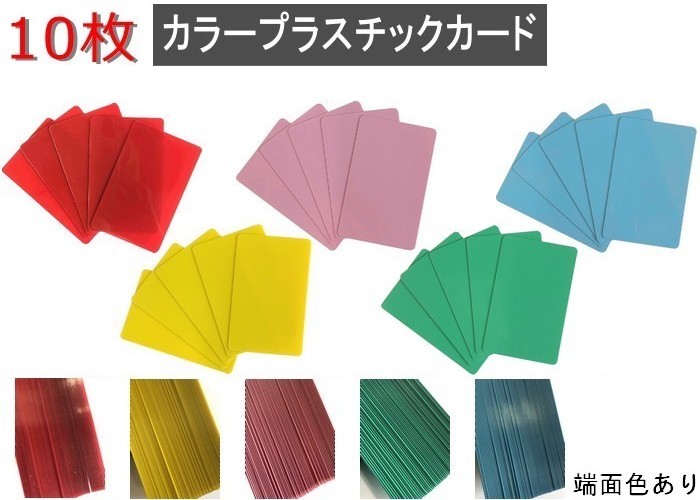 在庫限り 端面色あり カラープラスチックカード 厚さ0.76mm ISO規格サイズ 86x54mm レッド・イエロー・グリーン・スカイブルー・ピンク PVC素材 10枚