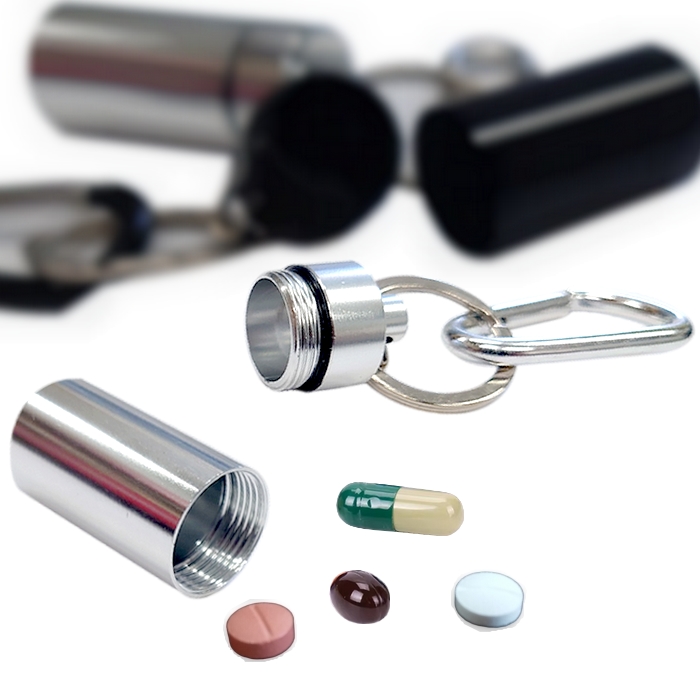 携帯ケース カプセル型 ピルケース カラビナ付き 携帯型ケース シルバー
