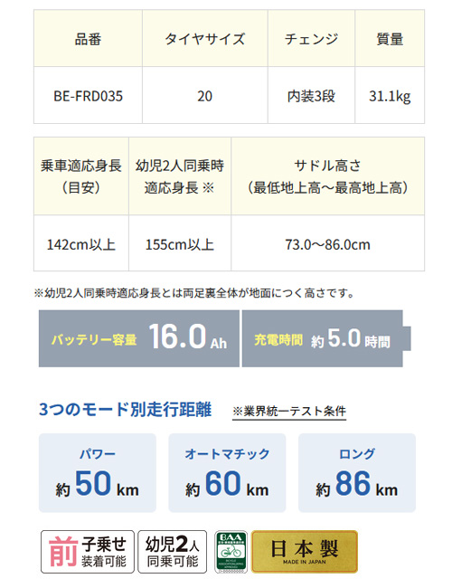 ※前後子乗せを使用する場合は2人合わせて30kgまでを推奨します。