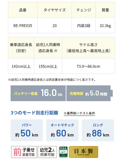 ※前後子乗せを使用する場合は2人合わせて30kgまでを推奨します。