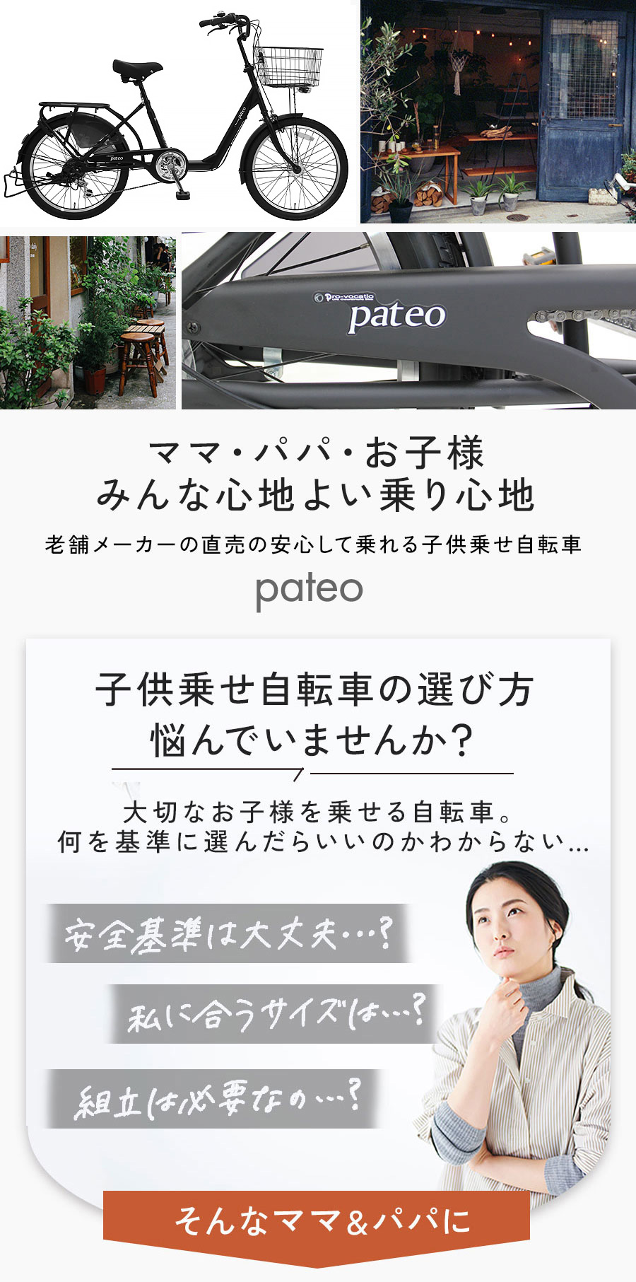 お子様を前/後ろ/前後にと自由に乗せる事が可能な自転車。