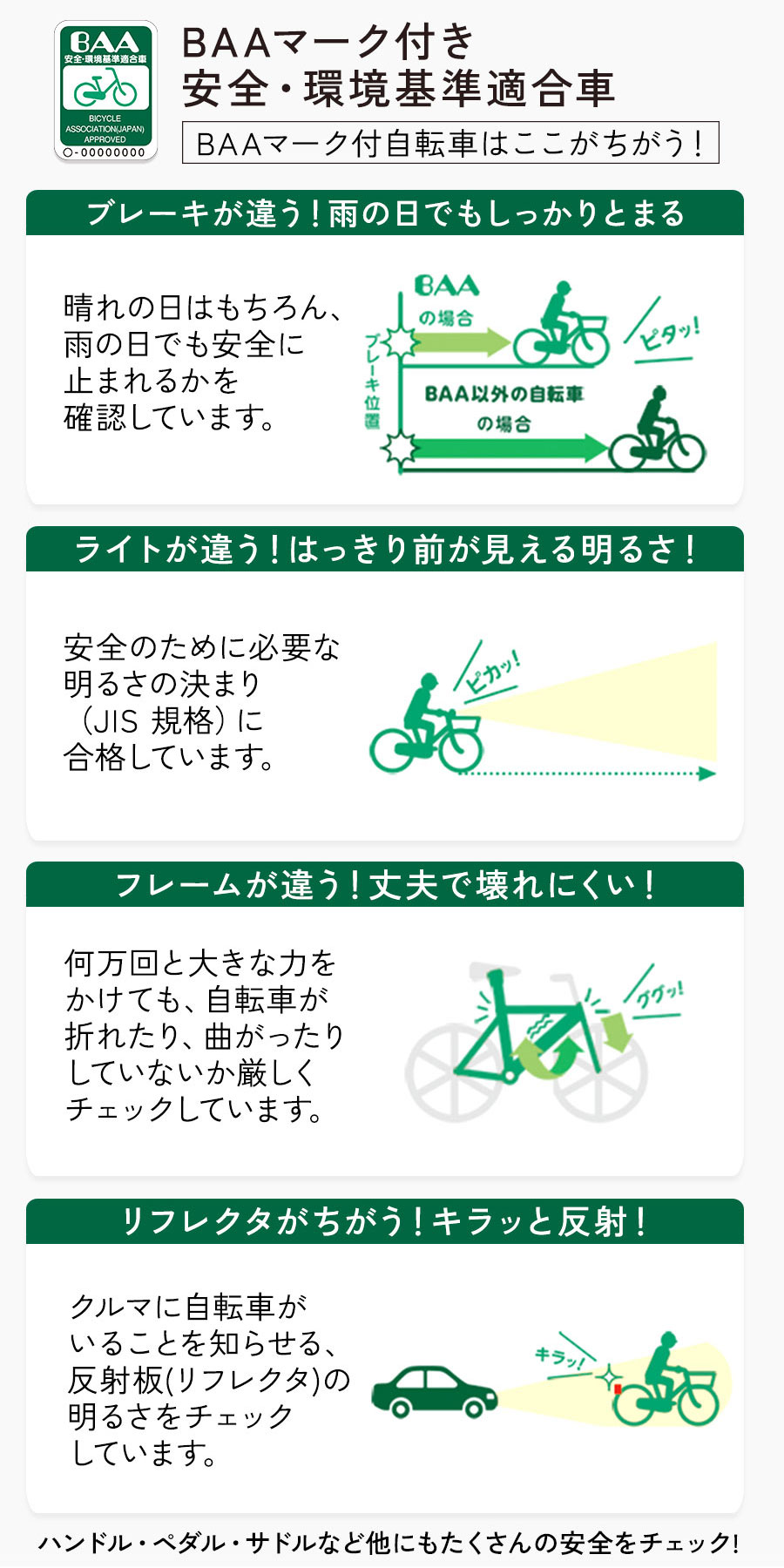 自転車の安全基準BAA適合車なので安心して乗ることが可能。