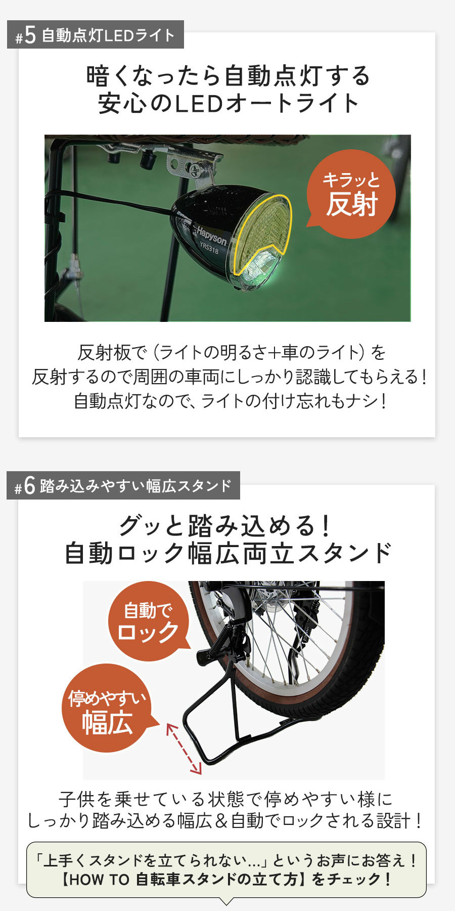 幅広両立スタンド、くるピタロック搭載で安心の安定感。